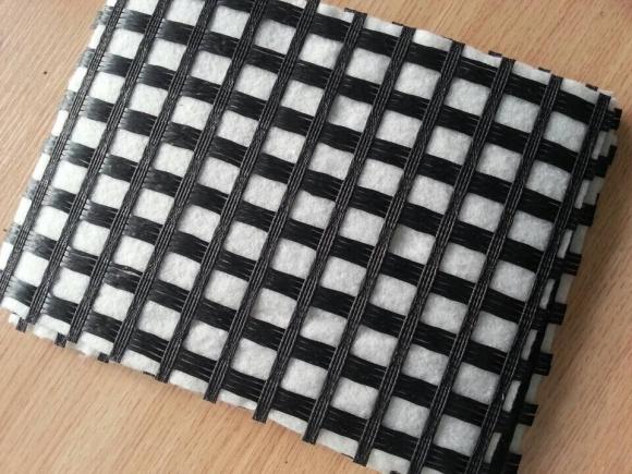 Fiberglass geogrid composite geotextile is glass fiber as reinforcing material, formed by and short fiber needle punched nonwoven composite.