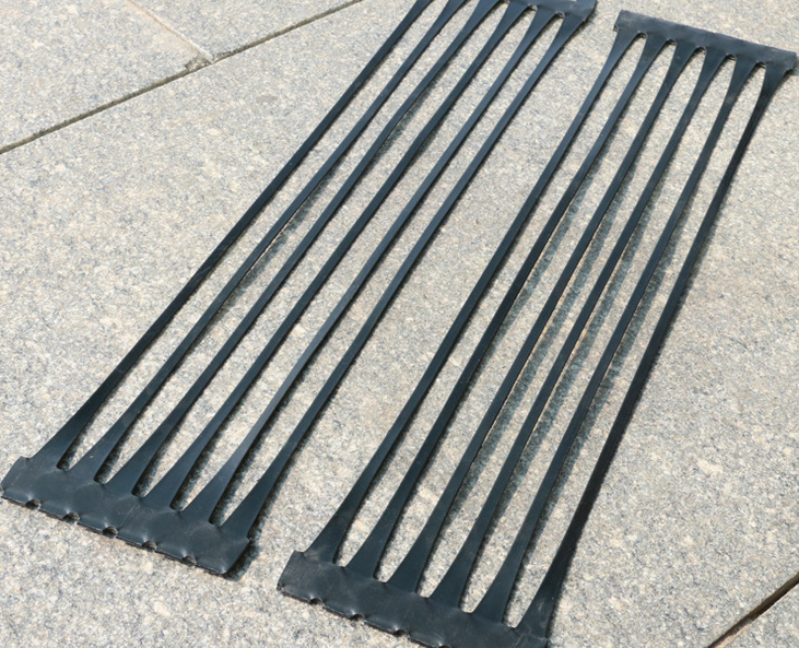 HDPE uniaxial geogrid is punched on the extruded polymer sheet material, which is mostly made of polypropylene or high density polyethylene, and then is used in the heating condition.