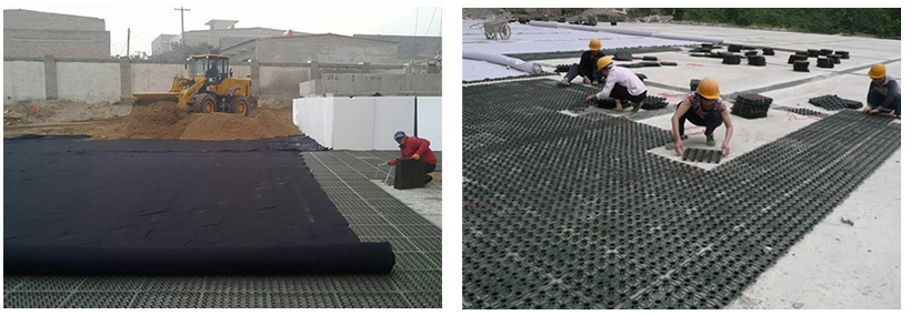 8. Drainage plate in laying side and right side lap down 1 - 2 fulcrum and can also be two soleplates touch together, above use geotextile lap, just keep no dirt from entering the drain drainage channel, keep smooth drainage.